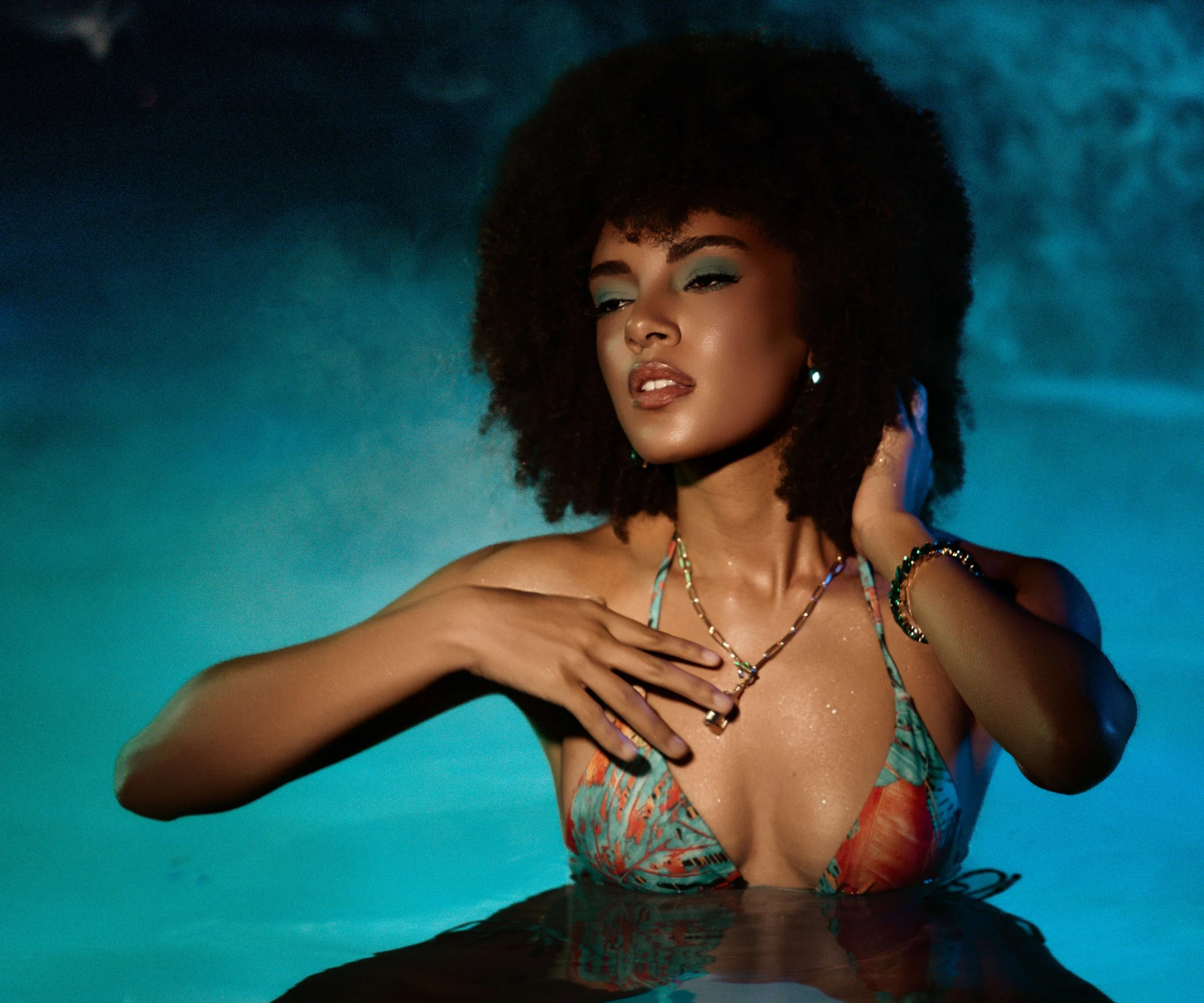This photo session requires special nuances for makeup, accounting for light, water resistance, aesthetic style and color harmony. My team is skilled in these areas, and we will schedule the artist for you. You may, however, style your own wet look hair (with guidelines)… or you can get extra pampering and expertise with our hairstylist.